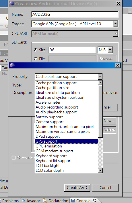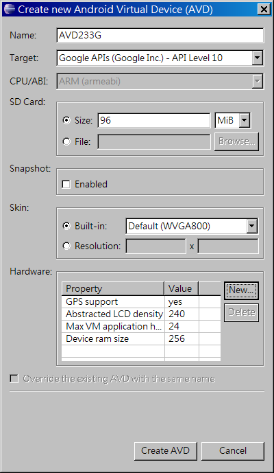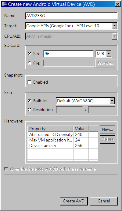 設定好之後,按 Create AVD 來產生此硬體配備與對應Android版本的AVD