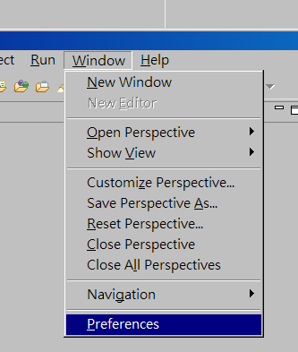 Eclipse中選擇 Window - Preferences