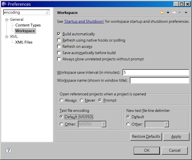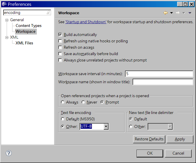 左上角輸入 encoding (編碼), 並按 Workspace