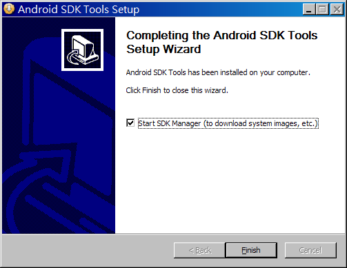 安裝完成後,Start SDK Manager 打勾,按 Finish